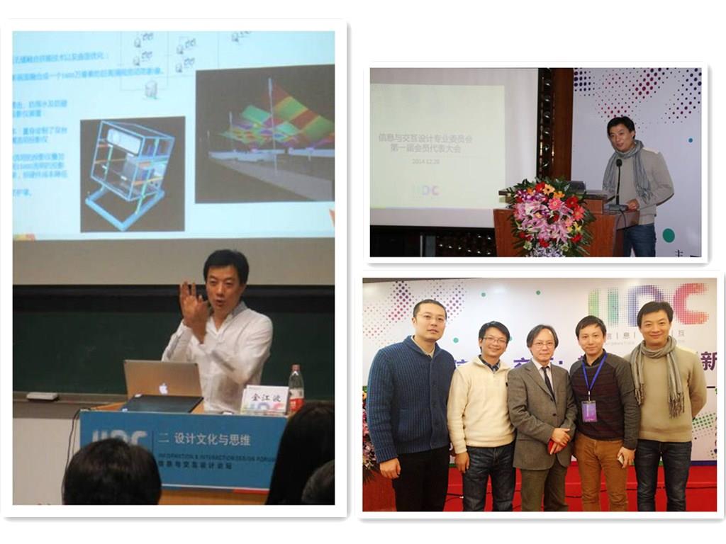 “信息•交互•教学研究创新与新业态论坛”暨信息与交互设计专业委员会第一届会员代表大会于12月20日在北京紫光国际交流中心正式开幕。美术学院金江波、蒋飞、刘景明三位老师出席了这次会议。中国工业设计协会信息与交互设计专业专委会单位为清华大学美术学院,鲁晓波院长任主任委员。一大批国内知名企业和大专院校领导将分别担任专委会执行主任、副主任、常务委员、委员等。金江波老师应邀出任该专委会副主任一职,并在会议期间评选为该专委会秘书长,并主持了专委会会议。同时,美院姚舰、李谦升、蒋飞、刘景明老师被评为专委会委员。
