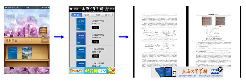 自2015年1月1日起,《上海大学学报(自然科学版)》在App Store成功上线,正式拉开学报纸质版与数字版(在App Store上同步出版)双模式出版的帷幕。目前,2013~2014年共12期的论文内容已上线,供广大读者、作者免费阅读,学报审稿专家、作者还可直接点击客户端页面进入学报主页查询论文送审情况。
