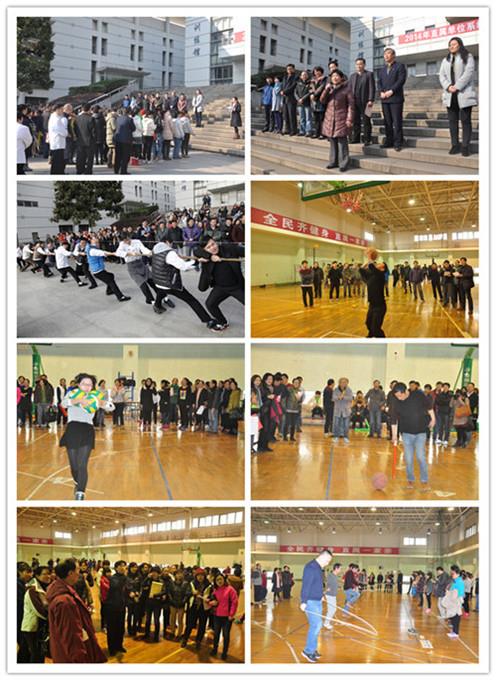 12月26日下午,以“全民齐健身 直属一家亲”为主题的直属单位系统第二届迎新年趣味运动会在校本部体育训练馆举行。校党办主任、机关党委书记余洋,校工会常务副主席姜继平,直属单位党委书记陆翠兰以及各直属单位系统党政领导出席了运动会。趣味运动会由直属单位党委副书记、直属单位系统分工会主席黄坚主持。直属单位系统教职工近300人次在集体类、团队类及个人类9个项目上以趣味竞技的方式迎接2015年的到来。