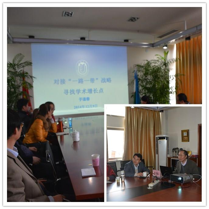 于逢春教授主要从事中国边疆学、地缘政治学、海陆丝绸之路研究,是“中国边疆学”学科主要构建者之一,也是国内最早运用民族主义理论探讨近代中国如何在一个多民族帝国中构筑民族国家的研究者,对于“一路一带”战略的研究颇有见解。他认为,“一路一带”战略是中央为了破解“西北内忧、东南被围”困局而提出的战略构想,是统筹国内国际两个大局作出的重要方略。“一路一带”战略对上海最有利,惟有上海最有能力承担起“先行先试”重任,积累可复制推广的经验。而上海大学依托现有的社会学学科优势,建设地缘政治学及中国边疆学跨学科平台恰逢其时。通过学科间的交叉和融合,学校应重点推进陆上丝绸之路的“反恐”与国家安全、海上丝绸之路的国家海洋政策与海洋战略研究,将学术研究和智库建设并行,对接国家与上海重大需求,将上海大学建设为“一路一带”边疆战略研究最具竞争力的基地。