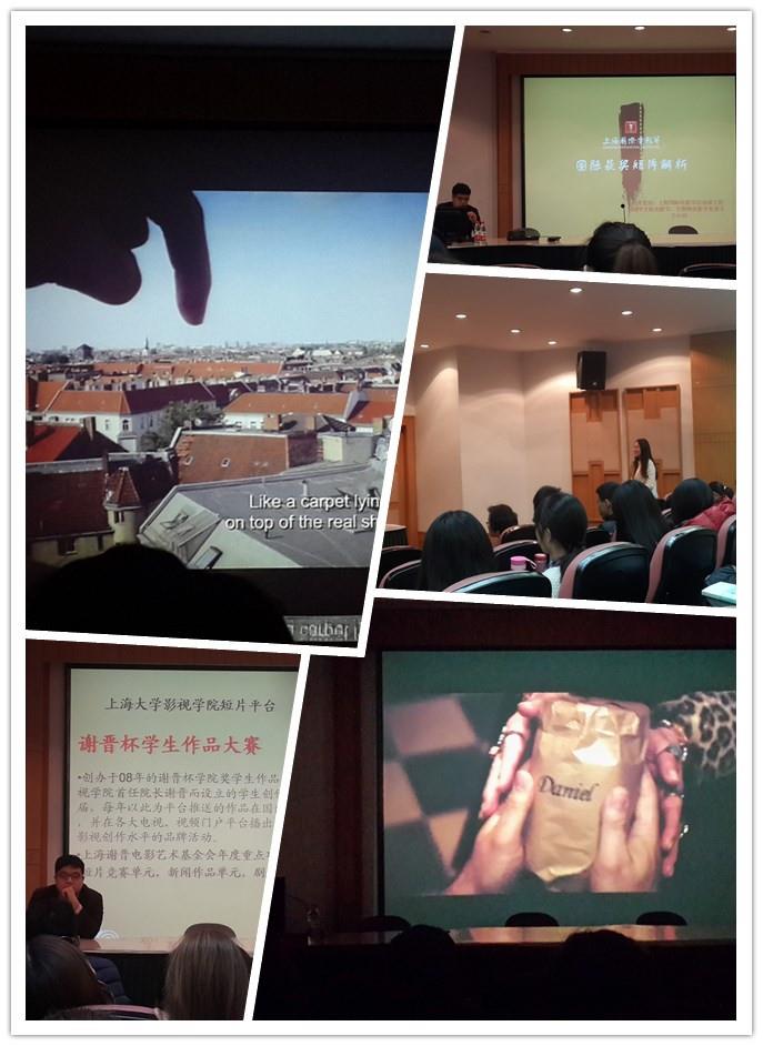 2014年11月28日下午一点在J楼的上海大学影视学院社会科学新论课上举行了上海国际电影节国际获奖短片解析的讲座,诚挚邀请了上海国际电影节活动部主管、SIIFF手机电影节、互联网电影节负责人王小钊作为本次讲座的主讲嘉宾。