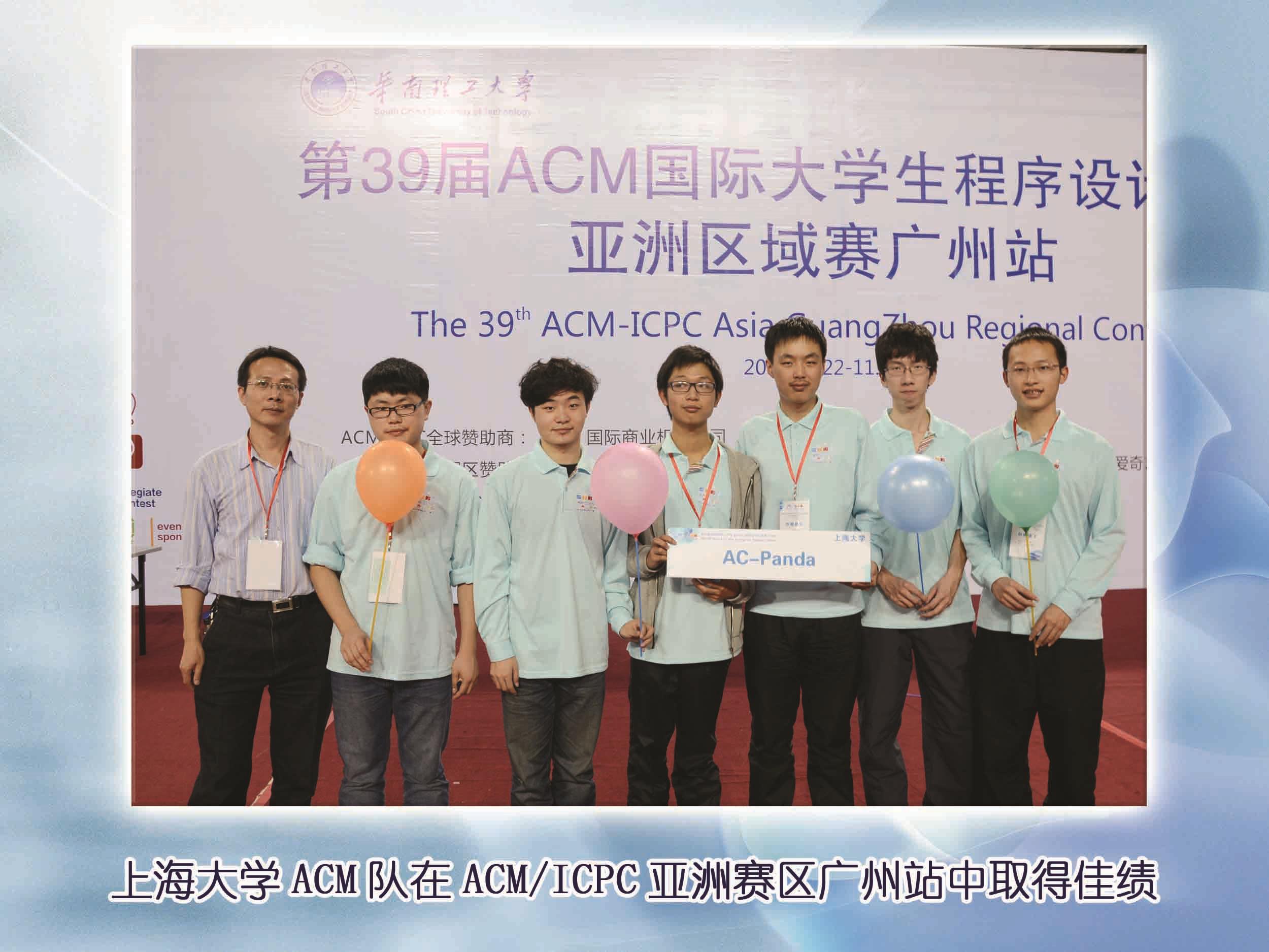 第39届ACM/ICPC亚洲赛区广州站的比赛于2014年11月22日至23日在华南理工大学拉开帷幕。本次比赛有来自全国的160多支高校队伍参赛。我校ACM集训队派出了AC-Panda和F-Doge两支队伍参加,其中AC-Panda队由计算机学院大二学生高樱宁、郑旭铭、许燚组成,F-Doge队由计算机学院大四学生吴旻烨、周杨、丁天宇组成,由教练李卫民老师带队参赛。