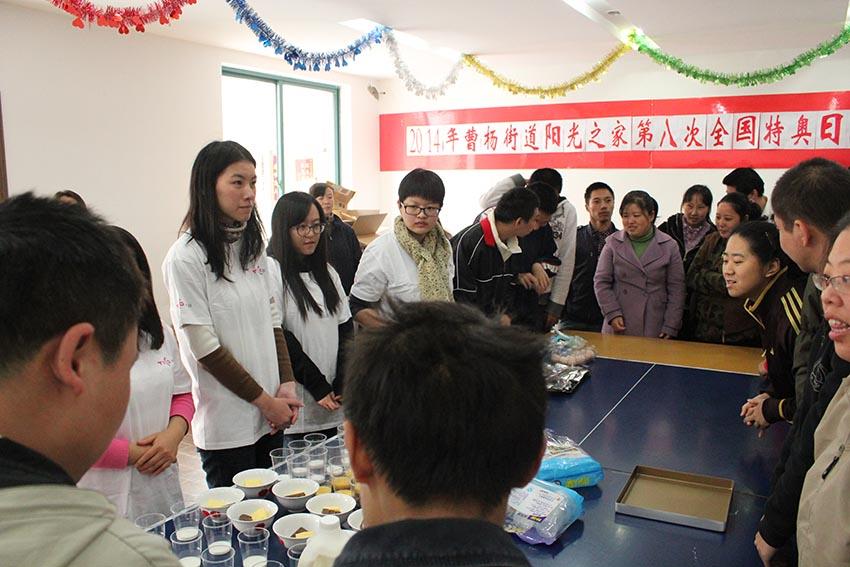 2014年11月17日,影视学院影工系和天创数媒集团的志愿者们一起来到上海曹杨三村的“阳光之家”,和那里的智障人士朋友们一起开展联欢活动,学习制作饼干。