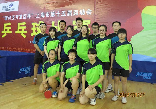 2014年9月26日-28日,上海市第十五届运动会乒乓球比赛在华东理工大学奉贤校区举行。经过3天紧张激烈的角逐,我校学生代表队取得了女团、女单和混双冠军,男团获得季军、男单获得亚军以及女双获得第六名的优异成绩。
