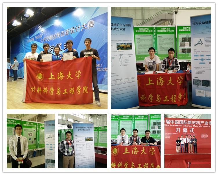 大学生新材料创新设计大赛的成绩。参赛的两支项目团队分工合理,各有所长,互相配合,充满活力,指导教师尽心尽力,关怀备至,两支队伍的获奖体现了学院作为上海大学学生德育工作特色基地——学生科技创新特色基地的良好建设成果。