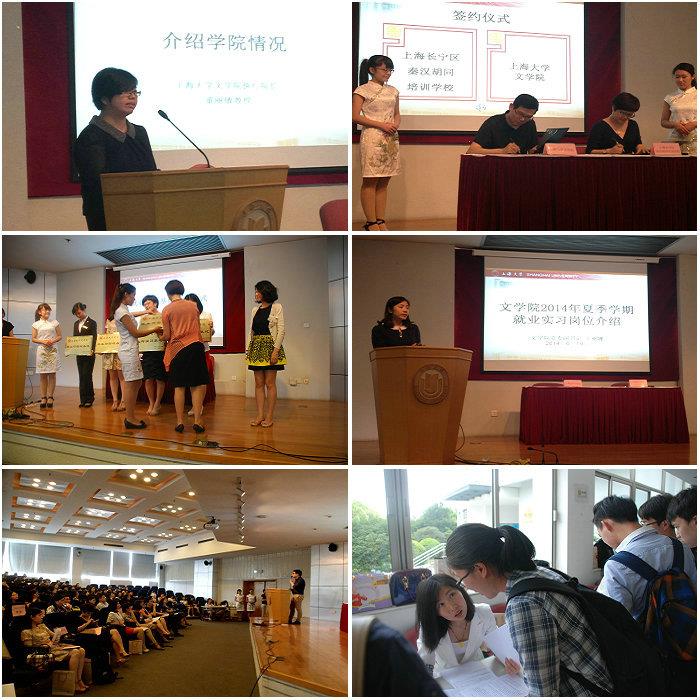 6月19日下午,上海大学文学院就业实习基地签约仪式暨夏季学期就业实习岗位发布会在新校区行政楼报告厅举行。上海大学招毕办主任叶红、文学院党委书记竺剑、文学院执行院长董丽敏、文学院党委副书记王丽娜、文学院副院长郭红以及五家企业和机关事业单位代表出席会议。会议由文学院就业专职老师郑丽主持。