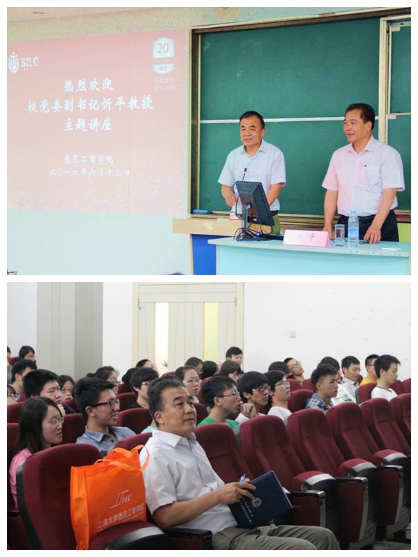 6月13日下午,上海大学党委副书记忻平教授应邀为悉商学子带来主题为 “留学生与强国梦”的精彩讲座。学院党委书记李双主持讲座,学院英才计划学生、入党积极分子以及13级学生有幸聆听本次讲座。