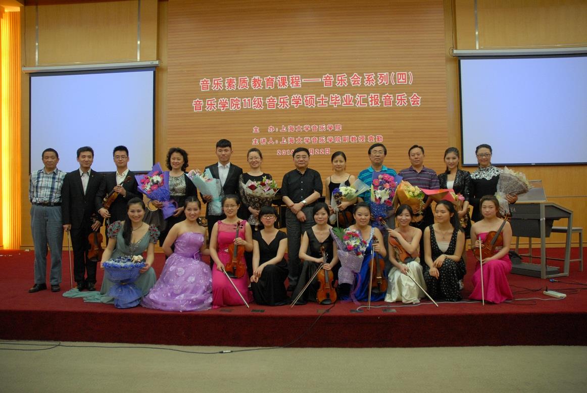 2014年5月22日晚19:00,上海大学音乐学院“音乐素质教育课程——音乐会系列(四):11级音乐学硕士毕业汇报音乐会”,在上海大学校本部图书馆报告厅成功举办。本场音乐会是上海大学音乐学院11级音乐学硕士生毕业的重要环节之一,同时也是对他们进校三年来相关学习成果的展示及一次重要的艺术实践机会。出席本场演出的嘉宾包括上海大学副校长、音乐学院院长叶志明教授及音乐学院的院系领导。众多音乐学院学子们,也作为观众观看了本场音乐会。
