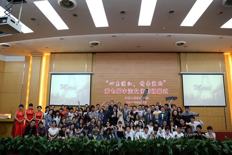 经过一个多月精彩纷呈的中法文化艺术的体验,2014年5月12日晚,由上海大学中欧工程技术学院主办的第七届中法文化节闭幕式在图书馆报告厅顺利举行。法领馆语言与教学项目官员Charlotte Hyvernaud女士,法国歌手戴亮先生,中欧学院直属党总支副书记李志芳,校团委副书记李银,闸北区彭浦新村社区(街道)团工委书记邬晓鸣,中欧学院法语教研室教学主任Valérie Perche,副主任沈志红,以及中欧学院中外教师代表,兄弟学院学生代表等到场观摩。