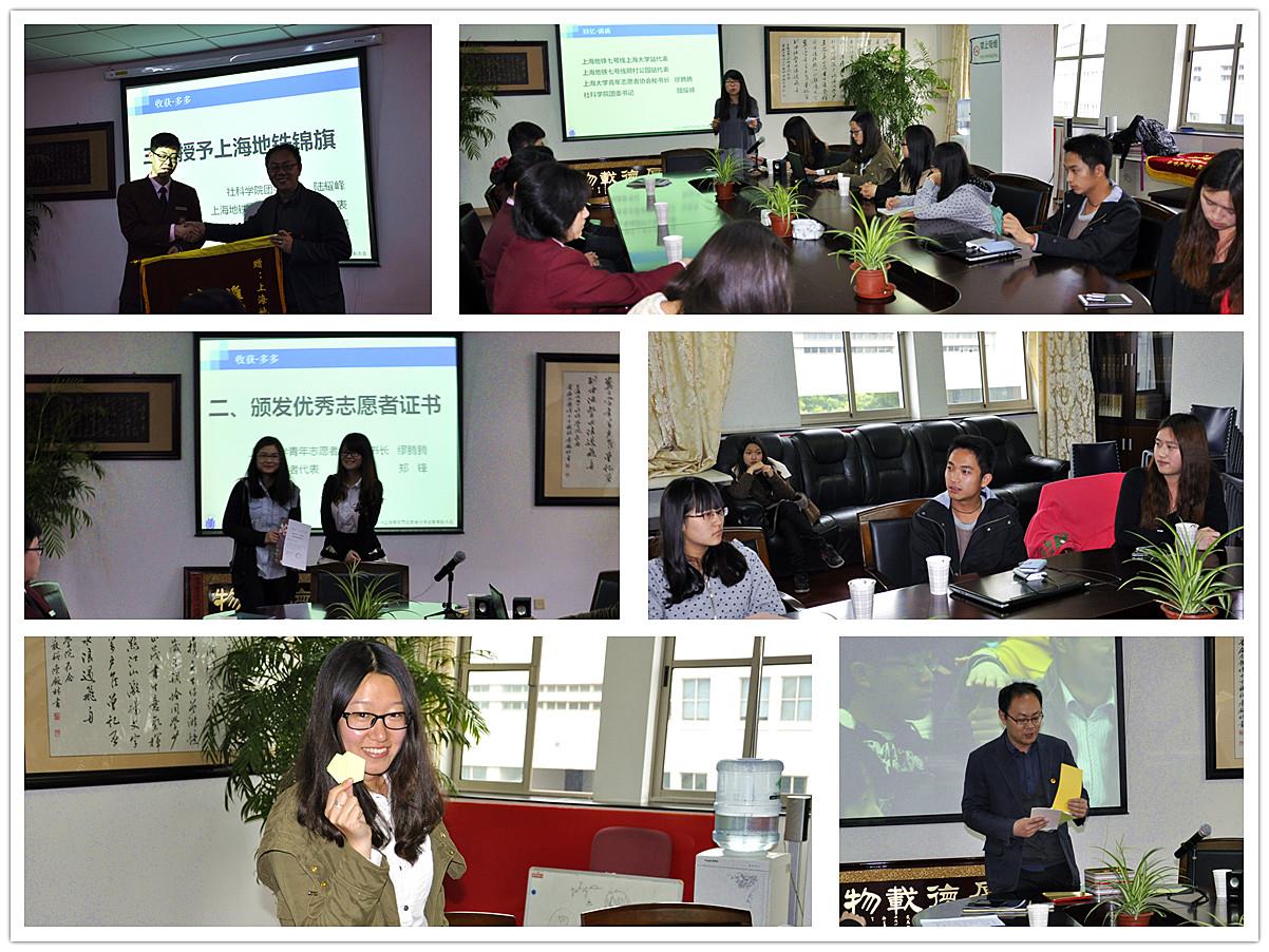 5月4日下午3点,2014上海樱花节志愿者分享会在宝山校区B401顺利举行。出席本次活动的嘉宾有上海地铁七号线工作人员代表、社科学院团委书记陆耀峰、上海大学青年志愿者协会秘书长缪腾腾和2014上海樱花节的志愿者。本次活动的主持人为社科学院13级硕士党支部组织委员项欢欢。