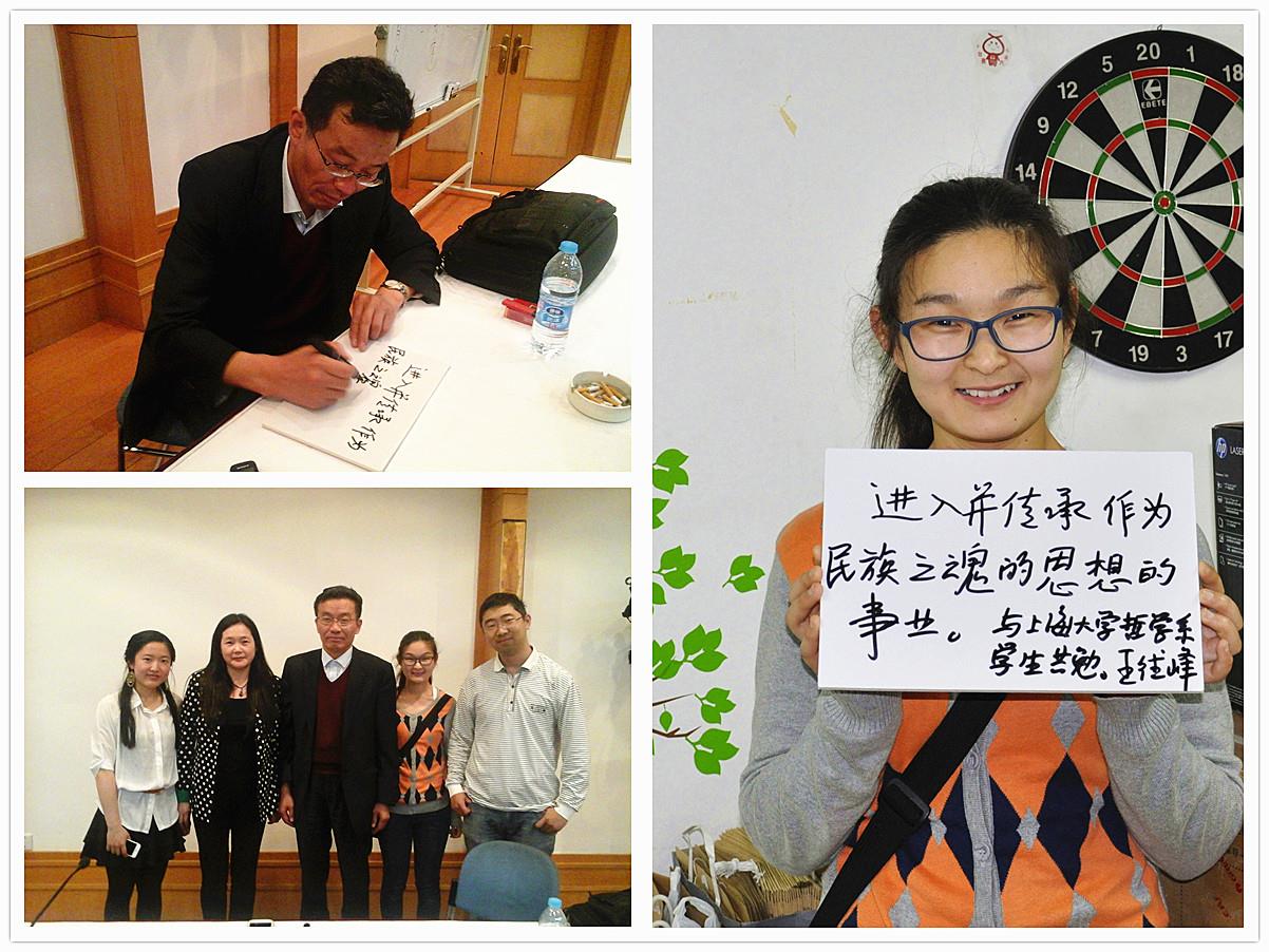 5月4日下午16时,复旦大学“哲学小王子”:王德峰教授在“爱智讲坛”之后,应邀在校本部J201热情接受了上海大学学子的采访。在社科学院徐琴教授的介绍引领下,社科学院2013级硕士研究生叶娜、王晓萌和2010级本科生于翔进行了此次采访。