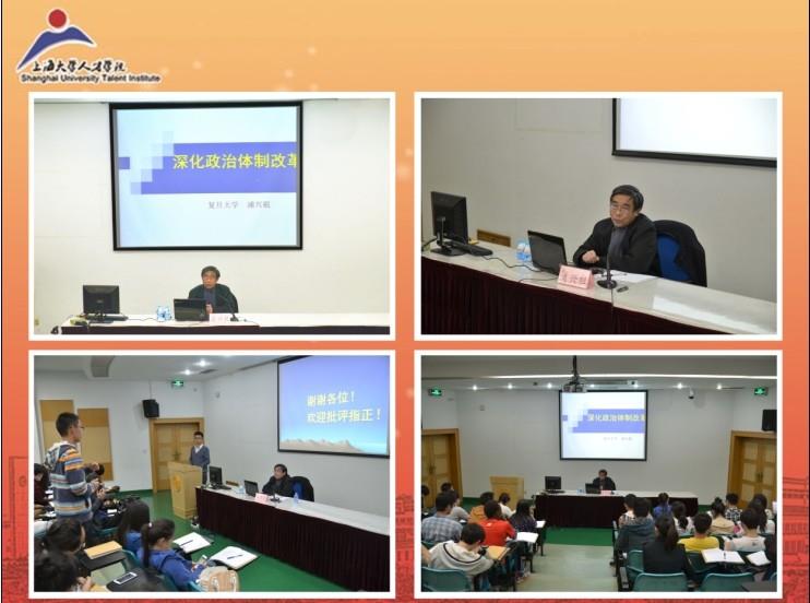 4月25日下午2点,复旦大学国际关系与公共事务学院的浦兴祖教授做客上海大学人才学院,在教学楼J101报告厅带来了以“深化政治体制改革”为主题的专题讲座。作为中国在恢复政治学、行为学等学科后的第一批教学研究者之一,浦教授在近三个小时的讲座中,以平实、凝练的语言为学员们详细阐述了中国政治体制改革道路,使学员们深刻了解了政治制度的发展道路及其现状。学员们在聆听的过程中不仅拓展了视野,深化了思考,更提高了政治素养。