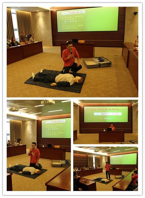 为了在乐乎楼集团广大员工中普及健康知识和医疗急救常识,集团特邀请校医院办公室主任周宏峰医生到集团开展急救知识讲座和现场人体模型模拟心肺复苏急救术活动。