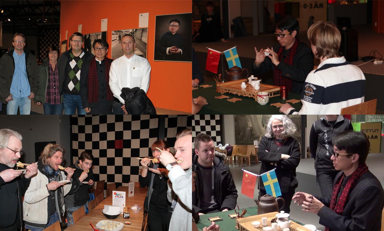 2014年3月5日,在瑞典Trollhattan市INNOVATUM科技园区,上海大学访问学者、数码艺术学院影视动画系潘璋敏副教授举办了“中国文化日”活动。活动展出了娴熟运用TS和HDR技术,记录中国传统百姓手工艺的摄影作品以及描绘上海大学校景的3D立体摄影作品。参观者们不但从一张张精美的照片中了解了中国传统手工艺文化,还纷纷戴上立体眼镜,观看了3D版的上海大学校歌MTV视频,通过虚拟的技术真切认识了上海大学。作为国家一级茶艺师、上海大学茶艺学会会长的潘璋敏副教授,为现场的来宾们演绎了十八道传统中国茶道功夫,渺渺茶香中,现场的两位高中生跃跃欲试,与潘老师进行了互动。最后,参观者们手持筷子,品尝了中国传统的“饺子”。在一片“好吃”的赞扬声中,活动的气氛达到了高潮。活动结束后,潘璋敏副教授接受了瑞典Trollhattan市报《 7DAGAR 》记者的专访,就中国传统文化与现代化冲突等做了阐释,表示今后将更多地关注环境保护等问题,用手中的相机记录传统文化在现代化进程中的前世今生。