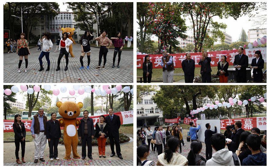 2014年4月2日中午,上海大学第七届英语节开幕式在嘉定校区文荟广场隆重举行。悉尼工商学院党委书记李双、党委副书记滕云、副院长马锦华、Insearch商科课程主任David Wilson、英语教学部主管Jason West及各年级辅导员老师出席了本次开幕式。