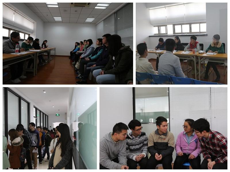 此次面试工作从3月17日至19日为期三天,面试时间分为上午9:00—11:00和下午13:00—17:00。期间每天上午8时,核心团队成员便进行准备工作,包括对面试场地的布置以及对面试所需材料的整理和分发。还未到面试时间,现场就有许多报名樱花节志愿者的同学提前到达等候面试。随着面试时间的临近,前来面试的同学越来越多,场面十分火爆。前来面试的志愿者同学们在引导人员耐心地维持中井然有序地等待面试,面试官们主要以压力面试、群面等形式进行面试,希望通过自我介绍、自由提问和情景模拟等环节为2014年上海樱花节筛选适合的志愿者。虽然此次面试工作圆满结束,但核心团队成员们又开始了紧张的后续工作,为即将来临的志愿者培训会做好准备。
