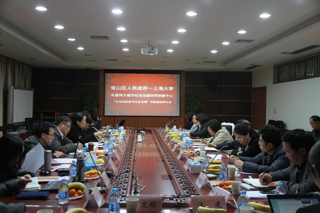 2014年2月25日下午,特大城市社会治理协同创新中心“社会组织参与社会治理”试验基地研讨会在上海大学B417召开。宝山区委常委、副区长周德勋及相关部门领导,上海大学党委副书记、副校长李友梅、上海大学人文社会科学处、社会学院相关负责人和教师参加了研讨会。会议双方就宝山区社会治理方面的重大需求任务、顾村大型居住社区以及友谊街道在社会治理方面的经验和亟待解决的问题,以及协同创新中心研究主题、建设任务和建设方案等问题进行深入地交流与座谈。