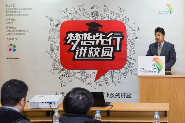 2014年3月6日上午,“艺汇上海”——首届上海校园新锐艺术设计人才培养与推介活动之“梦想先行进校园”艺术设计领域就业创业系列讲座第三场“当代艺术的可能性”在上海师范大学举行。本场讲座邀请的主讲嘉宾是日本国际交流基金高级访问学者、东京艺术大学客座研究员、上海大学美术学院硕士生导师潘力教授。此次活动由市教卫工作党委、市教委、市文广局主办,上海大学承办,上海师范大学、上海悠乐文化传播有限公司和上海科技会展有限公司协办。讲座由上海大学美术学院综合办公室主任阮俊主持,上海师范大学美术学院执行院长刘旭光为活动致辞。上海师范大学美术学院党委书记周建平,上海大学美术学院党委副书记王海燕,上海师范大学美术学院设计系党支部书记秦伟,上海师范大学美术学院设计系教授孟祥勇,上海师范大学党委宣传部张红斌,上海师范大学美术学院院长助理赵志勇以及datacolor科技产品经理夏立敏出席了此次活动。