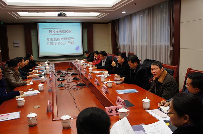 研讨环节,各位领导、专家热烈参与讨论,围绕交叉学科研究中心(院)发展中出现的问题,如研究生管理、“民主管理、教授治学”和为新建交叉学科研究中心设立准入制度等问题,以及我校交叉学科的发展战略进行了深入地探讨和意见交换。
