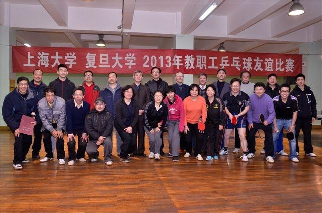 12月20日晚,复旦大学教职工乒乓球代表队一行30余人应邀来到上海大学访问比赛,校工会副主席姜继平,校体育学院直属党总支副书记、校乒乓球协会副会长孙小明热情接待了他们。