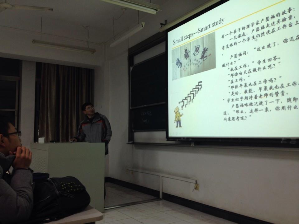 楚海建教授从力学的历史,力学的应用,每个人的大梦想(big dream)以及小脚步(small steps)这几个方面为理科试验班的同学们介绍力学。楚海建教授列举了牛顿,伽利略,胡克等人在力学史上的成就及贡献,让同学们对物理力学的发展有了更加深入明了的认识;楚海建教授又讲解了一些力学在实际生活中的应用,例如在工程方面的应用,比如驰名中外的水利工程都江堰;楚海建教授告诉大家,力学在我们身边到处都有表现,而当下力学学科一大热门就是结合人类自身,例如力学系张东升教授从事的生物力学方面研究。而力学又在航天及自然灾害如地震等方面有着更为明显的表现。因此,力学的重要性及必要性就得到了进一步的体现。力学的用处很大很广,楚海建教授还提到了力学学科发展的空间,比如我们尚不能有效地预测地震,这是值得力学学科的人们去进一步研究探索的课题。