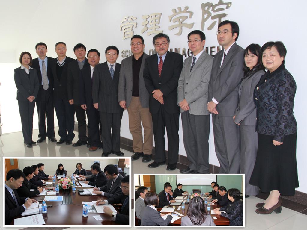 上海大学校长罗宏杰教授也从百忙之中赶来会场,亲切会见了日本客人和管理学院的同仁,对双方初步达成的合作交流意向表示肯定,并合影留念。