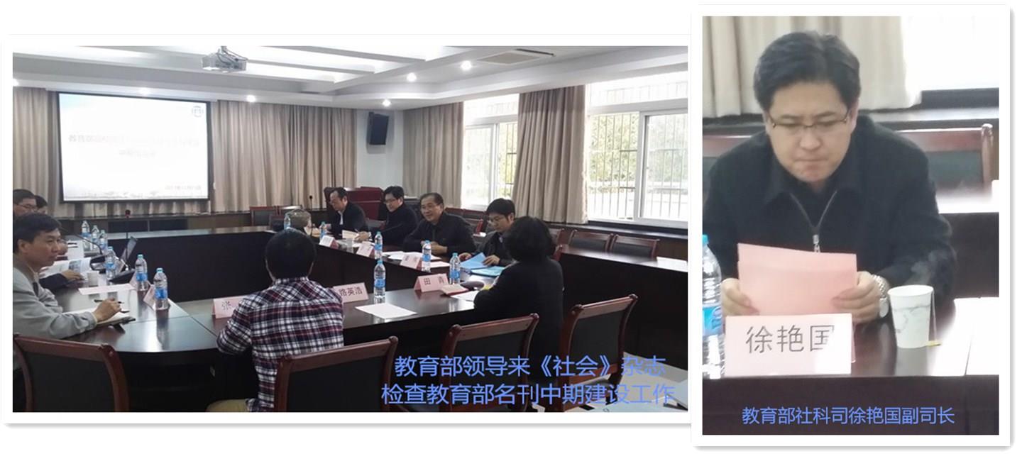 2013年11月15日下午,教育部社科司徐艳国副司长、田敬诚处长等一行三人,前来上海大学期刊社,对上海大学《社会》杂志在高校哲社名刊工程建设工作进行了检查并听取了工作汇报。上海大学党委副书记忻平、出版社党委副书记陈丽莉、期刊社社长秦钠、《社会》杂志副主编孙秀林以及期刊社相关领导、《社会》杂志编辑部的全体同志参加了会议。
