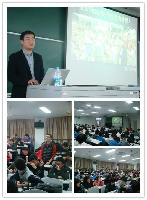11月24日上午9点,主题为“‘上帝粒子’和粒子物理学”的学术报告在校本部GJ106热烈举行,教室早早地挤满了兴致勃勃的同学。报告由上海大学校友、兰州大学核科学与技术学院副教授于福升主讲,于教授08年毕业于上海大学物理系之后,先后获得了巴黎第十一大学、法国国家科学研究院直线加速器实验室联合培养博士生学位和中国科学院高能物理研究所博士学位。