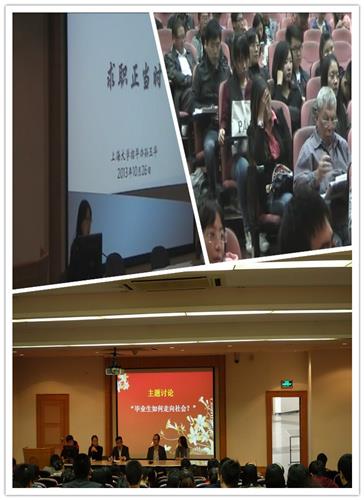 10月26日下午13时,由上海大学校友会主办,上海大学法学院、外国语学院、社科学院承办的“新航星”之校友讲谈系列——优秀校友和毕业生、毕业生家长交流会在校本部J103拉开帷幕。本次讲谈分为三部分:就业形势讲座,优秀校友和毕业生、毕业生家长交流会,各专业学院咨询会。出席本次活动的嘉宾有:上海大学就业指导中心孙玉华老师、外国语学院党委副书记王国建老师、上海大学社会科学学院党委副书记魏宏老师、上海大学法学院党委副书记傅新华老师、法学院院长助理姚锷老师以及三个学院的辅导员及毕业生、毕业生家长们。