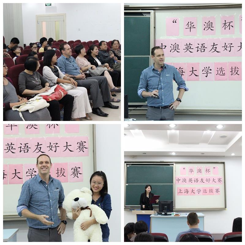 2013年9月27日,“华澳杯”中澳友好英语大赛上海大学选拔赛在嘉定校区悉尼工商学院文德楼报告厅顺利举行。经过前期初赛、复赛的重重选拔,12名来自悉尼工商学院,钱伟长学院,外国语学院,影视学院,法学院以及计算机学院的同学进入最终的决赛,悉尼工商学院党委书记李双老师应邀出席比赛。