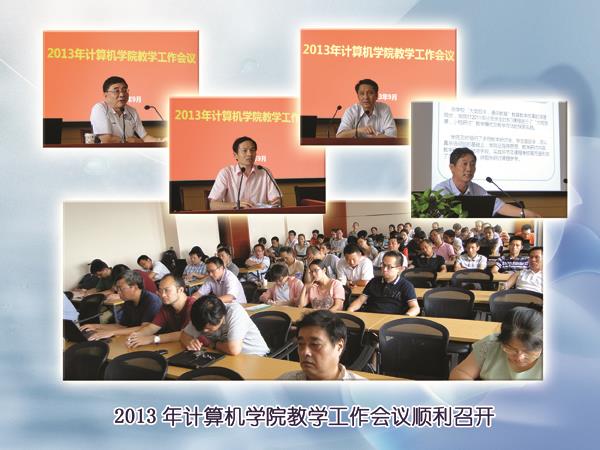 计算机学院2013年教学工作会议于2013年9月13日下午在东校区计算机大楼1106会议室召开。出席会议的有上海大学副校长叶志明教授、教务处处长万旺根教授,以及学院执行院长张武教授、学院党委书记董晓雯和计算机学院全体教师。会议以“深化教育教学改革实践、关注每位学生进步成长”为主题,聚焦“大类招生、通识教育”后三年的人才培养。会议由学院党委副书记徐文培主持。