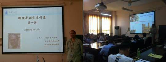 上海市海外名师——西班牙巴斯克大学J. Gonzalo Muga 教授,在2013年7月3日至7月15日在理学院物理系进行了首届“暑期学术讲座”。本次系列讲座共分八个主题,涉及热力学、相对论、量子光学、原子光学和量子信息等多个领域。