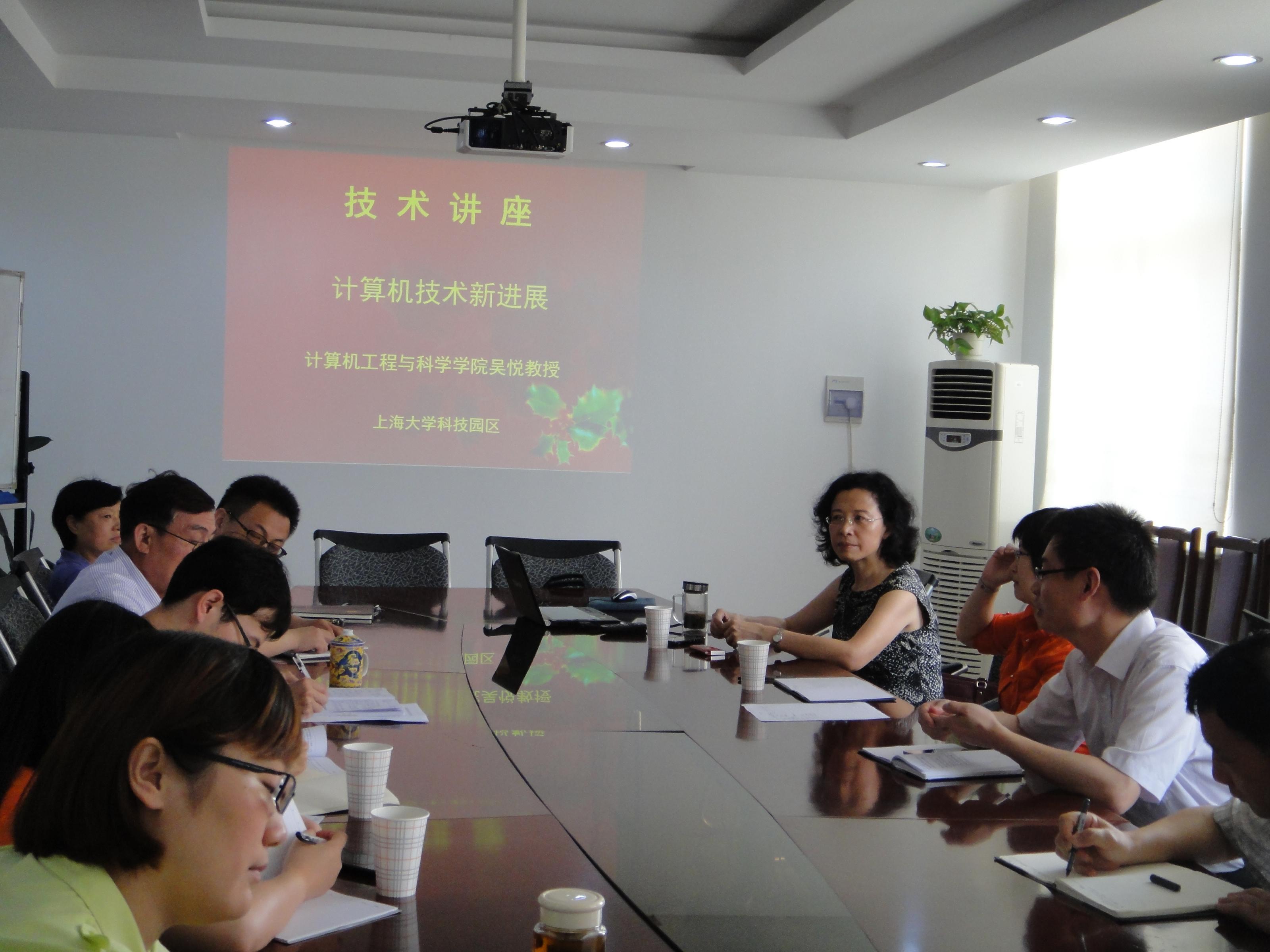 2013年科技园区科技系列讲座――计算机技术新近展,于2013年6月17日上午在科技楼518室进行。讲座邀请上海大学计算机学院副院长吴悦主讲。吴教授就计算机科学与技术的最新发展,结合计算机学院学科与开展的高性能与云计算、大规模科学与工程计算、社会计算、图形图像处理等方面研究与应用作了详尽的介绍,随后,参加讲座的园区人员与入驻企业技术人员进行了交流互动。讲座不仅使与会人员了解了学前计算机科学发展新技术与趋势,计算机学院在专业领域所取得的最新研发成果和研发能力,企业技术人员对计算机学院的新技术表示了兴趣与进行合作的意愿,科技园区将在学院与企业之间做好产学研合作桥梁工作,推进服务技术转移和科技成果产业化。