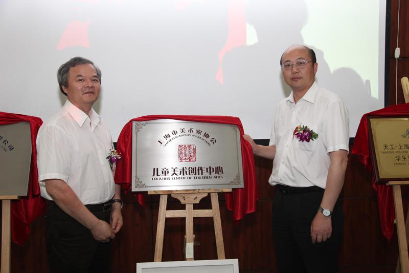 徐旭与陈琪共同为上海市美术家协会少儿美术创作中心暨上海大学数码艺术学院动漫创作实践基地揭牌。徐旭对各位莅临仪式的新老朋友表示了感谢,对此次活动在搭建校企平台、引进社会资源与技术、项目,共同改进学校教育的意义给予了肯定。他希望学院能够在钱伟长校长“打破四堵墙”的教育理念指引下,在校企平台上积极探索高效的人才培养模式。陈琪认为少儿美术创作与动画结合,必将推动中国动画事业的发展,并祝愿数码艺术学院动画系师生以上海市美术家协会少儿美术创作中心为平台,创作出越来越多的好作品。