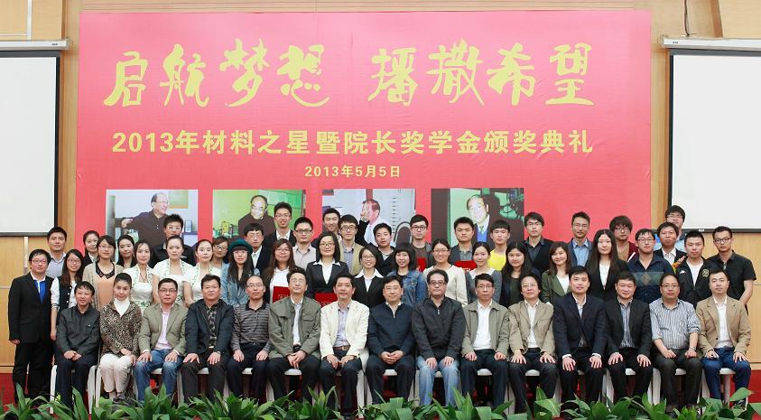 5月5日下午2点,材料科学与工程学院以“启航梦想播撒希望”为主题的2013年“材料之星”暨院长奖学金颁奖典礼在宝山校区图书馆报告厅隆重举行。校党委副书记鲁雄刚,校长助理、研工党委书记李伟,校纪委副书记、监察处处长吴仲刚,校党委宣传部副部长钟德津,教务处处长万旺根,社区部主任、社区学院党委书记王军华,校团委书记胡大伟,校招毕办副主任汪宏斌,材料学院院长张捷宇,材料学院党委书记朱明原以及院系领导和导师代表出席了本次典礼。此次颁奖典礼还特别邀请了社区学院部分学生代表担任学生评委。