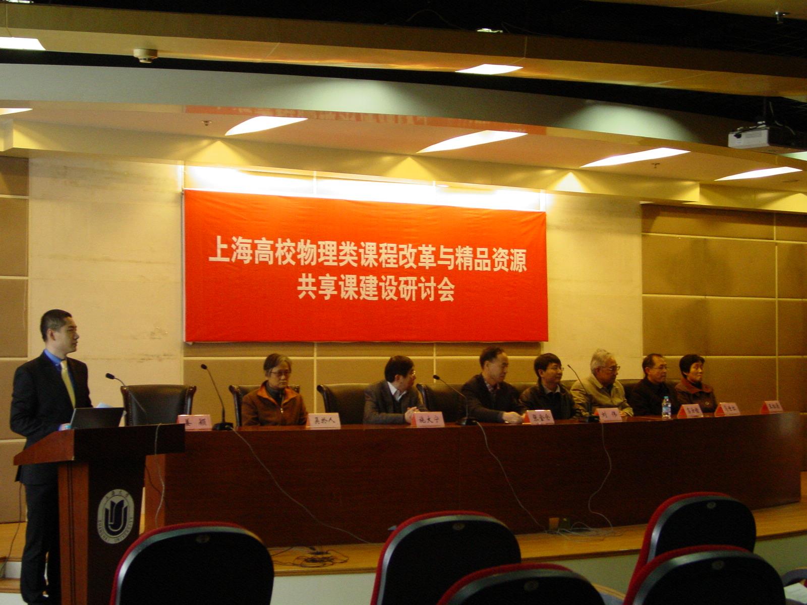 2013年4月21日上海高校物理类课程改革与精品资源共享课建设研讨会在我校乐乎新楼二楼报告厅隆重举行,来自复旦、同济、华师大、上大、华理工、上理工、上师大、东华等15所高校50余名教师参加。物理系系主任赵新洛教授亲临会场欢迎各位专家和与会代表,开幕式由物理系教学主任姜颖教授主持,理学院副院长张金仓教授代表理学院致欢迎辞,高等教育出版社物理分社刘伟社长就教育部关于精品资源共享课的背景、规划、目标和建设思路作了详细的介绍。