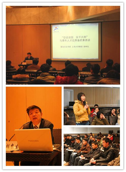 3月1日,人才学院七期全体学员在美术学院418室蔡冠深讲堂,聆听了著名社会学家、上海大学教授胡申生带来的精彩讲座。胡教授引经据典,针砭时弊,为学员们深刻的解析了“空谈误国 实干兴邦”的深远意义。