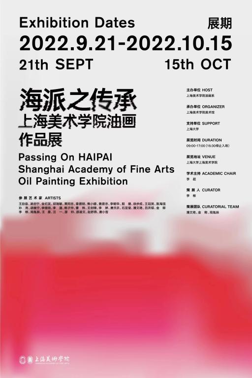 上海大学上海美术学院油画系立足于上海这一文化重镇,从油画材料的本体出发,强调基础教学,在基础油画传统的主体上重视油画语言的研究和探索。重视当代艺术观念上的研究和观察,以中国文化精神和当代艺术精神的研究为双翼,探索一条中国式的油画教学和创作之路,传承海派绘画。在这条道路上,有前辈教师的开创精神,也有新一代教师在学院精神与当代语境下对绘画的探索。此次展览,将汇集上海地区老中青三代上海美术学院油画系教师的精品力作,同时邀请多位具有上海大学上海美术学院教育背景的中青年油画家参与,力求展现当今“新海派”油画的思考与实践。
