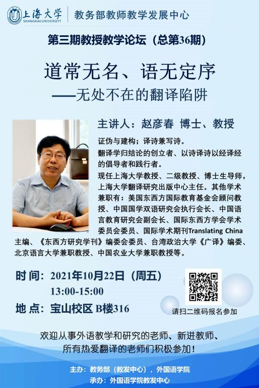 上海大学教务部教师教学发展中心第三期教授教学论坛(总第36期)道常无名、语无定序——无处不在的翻译陷阱