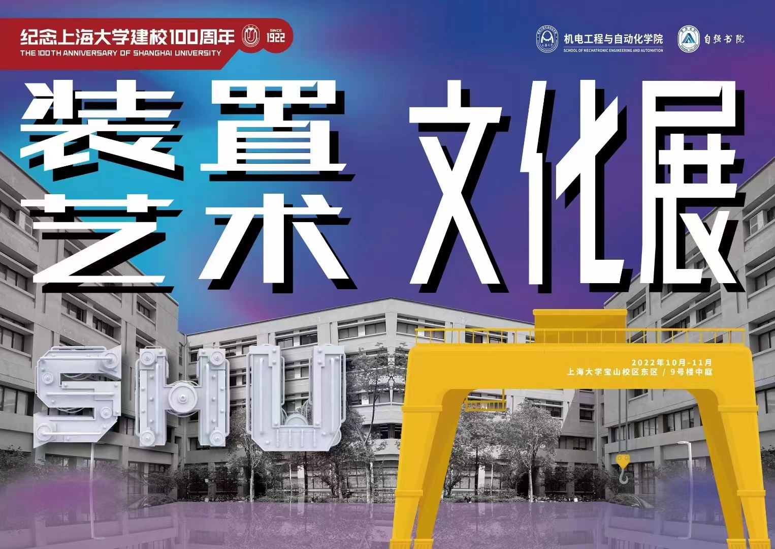【活动通知】自强书院&机自学院“装置艺术文化展”于10月28日(周五)下午开展,展览时间10月28日-11月28日,地点上海大学宝山校区东区9号楼中庭,欢迎老师同学参观打卡。